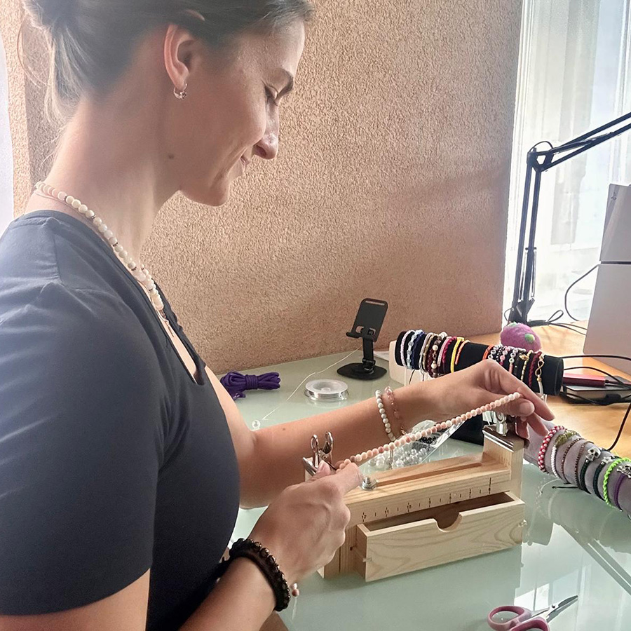 Ich bin Dominika – das kreative Herz hinter Lunamira. Schon als Kind liebte ich es, mit meinen Händen etwas Schönes zu erschaffen. Heute ist daraus eine kleine Welt geworden, in der Armbänder, Ketten und zarte Schmuckstücke entstehen – intuitiv, ruhig und getragen von dem Moment, in dem ich sie kreiere.